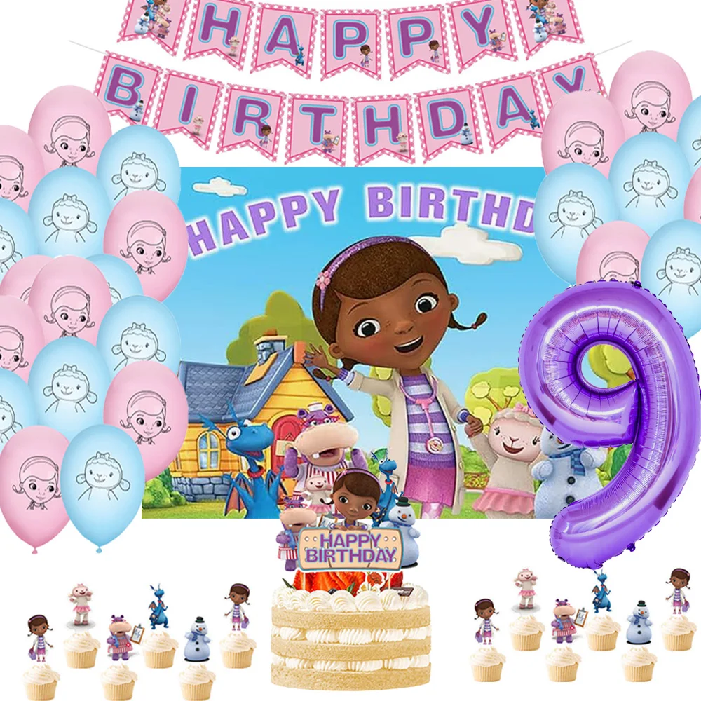 Kreslený hračka doktor doc mcstuffins narozeniny večírek backdrop dekorace dort čísel balón prapor děťátko sprcha děti dar supplie