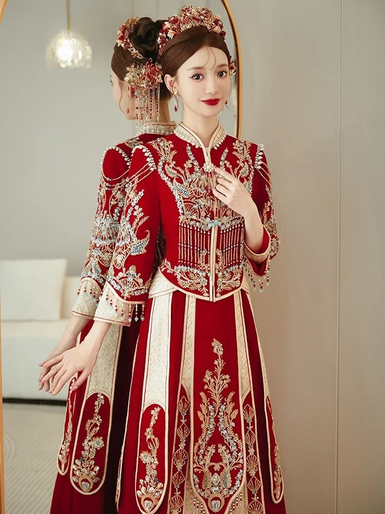 Nový chinese-style svatební oděv šaty pro brides těžký a form-fitting samet gowns