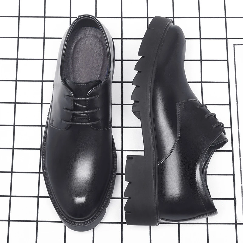 Pánská černá kůže krajka nahoře šaty obuv s hustý vláčet podrážka platforma blok pata formální podnikání úřad práce denně nést obuv