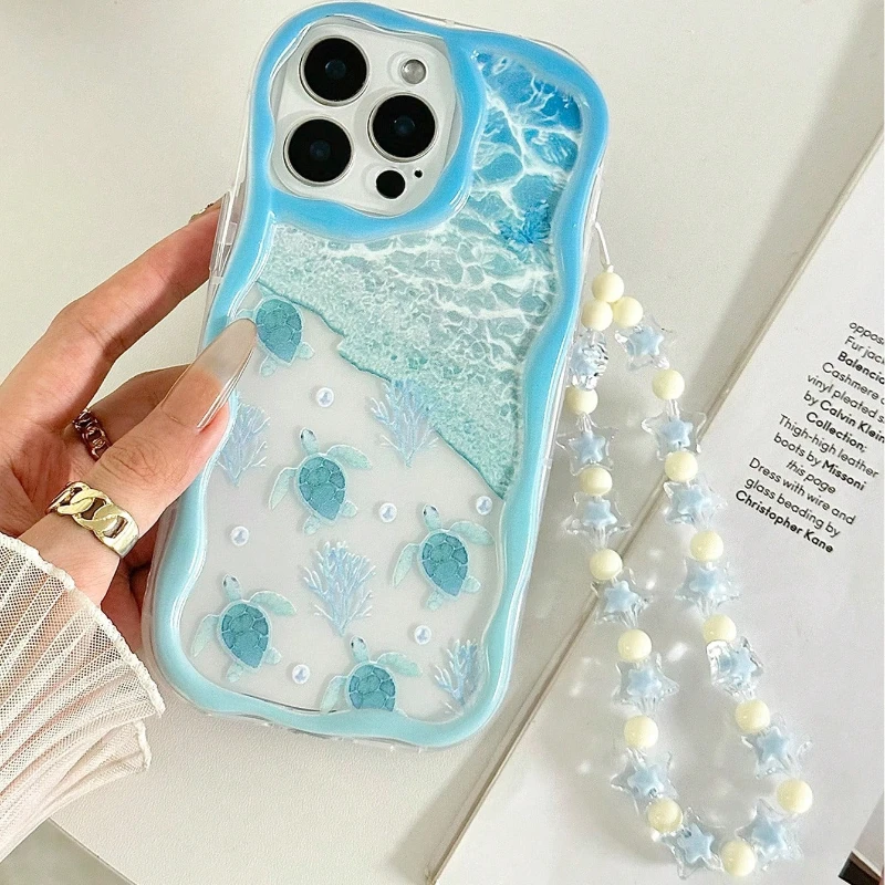 Móda wavy-edge mořská želva lodní elementy telefon pouzdro pro iPhone 17 16 15 14 13 12 11pro pro maxi 16E 17E průhledný korálek laso měkké zakrýt