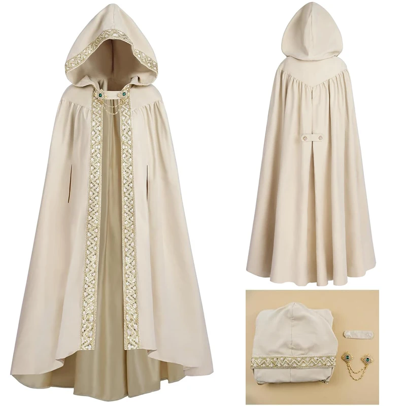 Středověký retro gotický s kapucí krajka nahoře plášť muži ženy pastoral ribbon-trimmed dlouhé plášť halloween jeviště představení oblečení