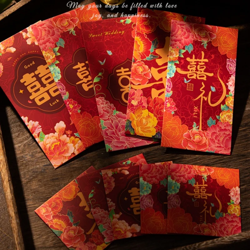 10pcs/set svatební červená obálek manželství dar brašna hotové peníze obálek dvojitý štěstěna šťastný kapsa hongbao svatební večírek dekorace