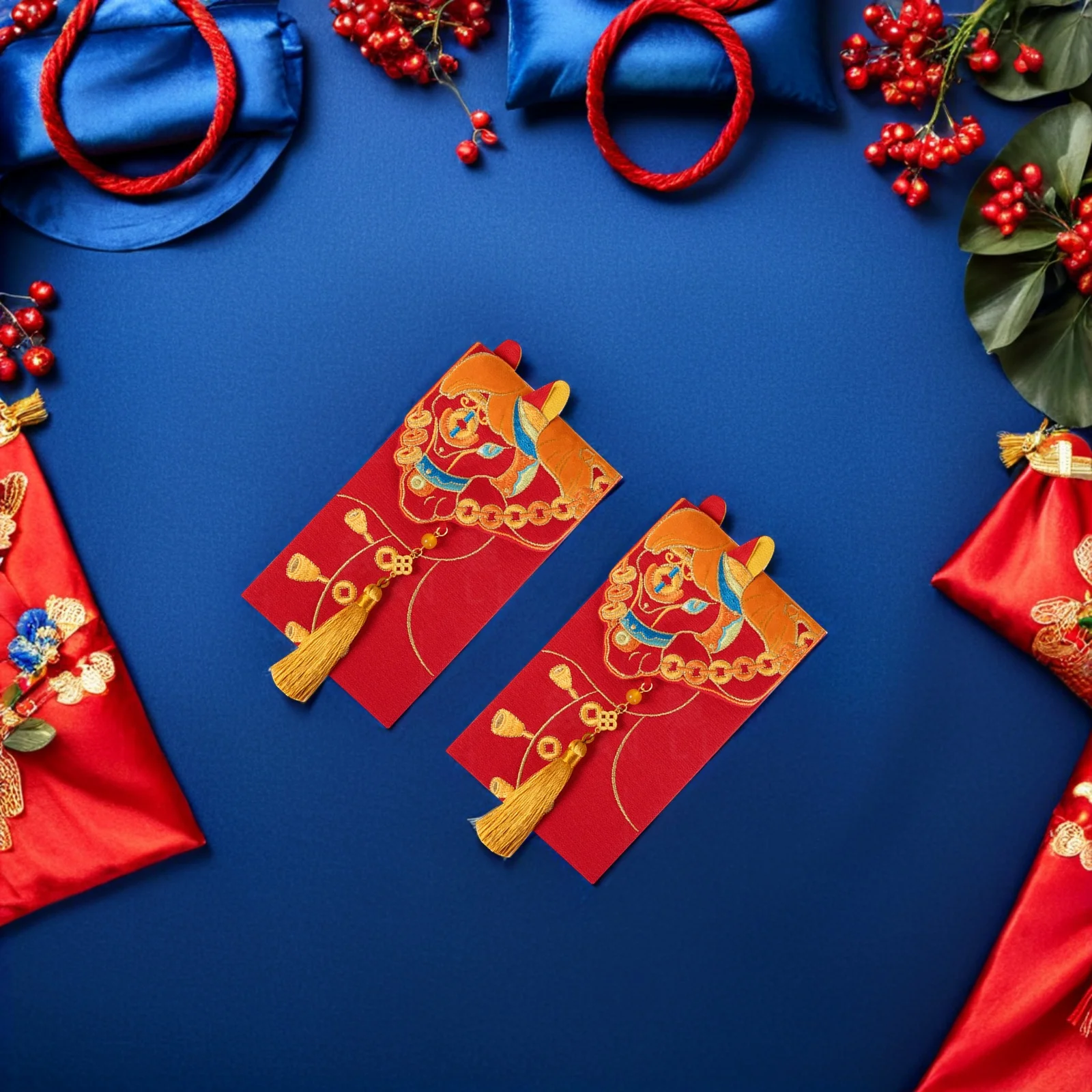 Starobylý vyšívané červená obálek textilie Hong bao 2026 měsíční nový rok svatební devizy balíček znovu použitelný asiat oslava dar