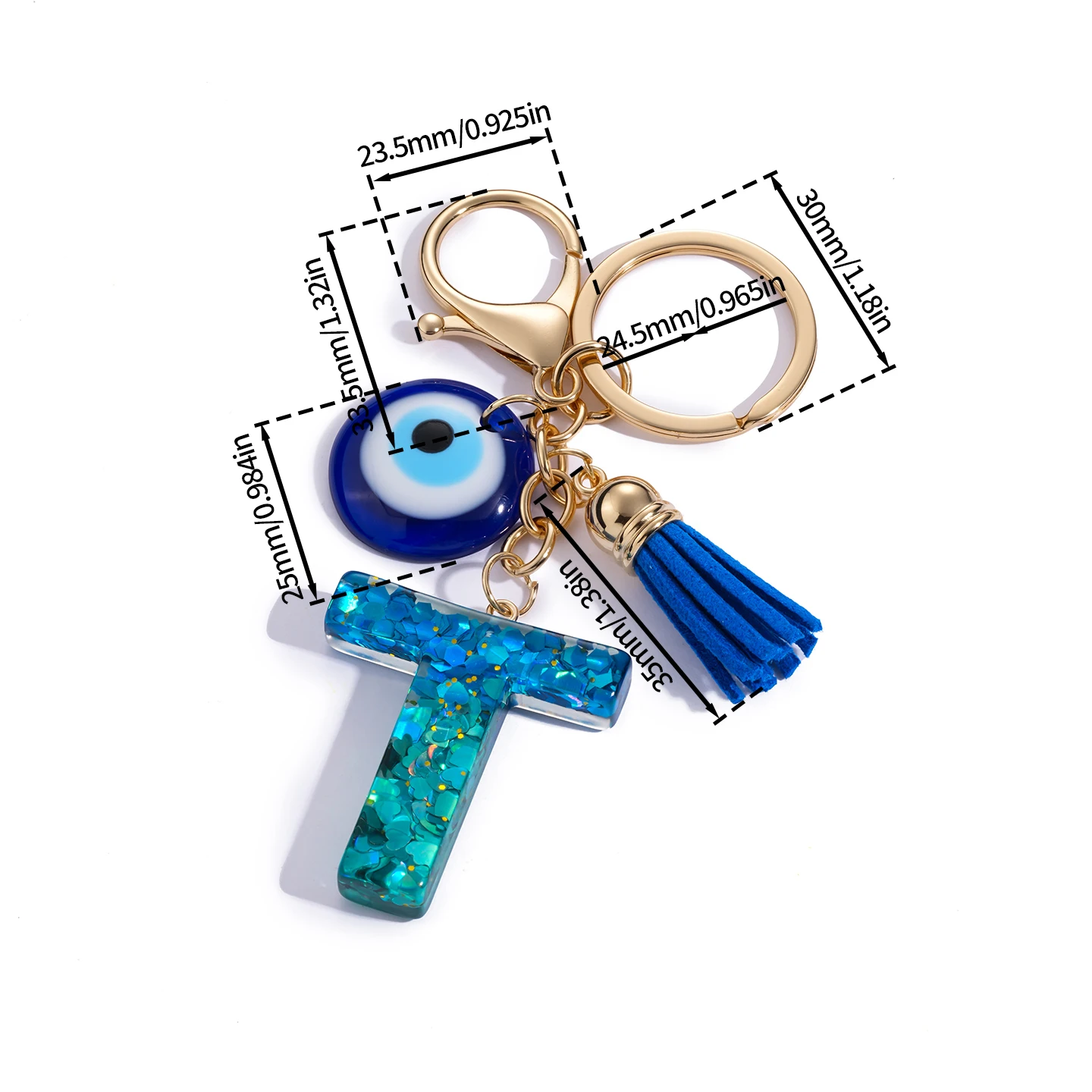 1pc/lot pryskyřice 26 anglický abeceda slitina klíčenka devil's oko pendent klíč běžící pás pro batoh půvab příslušenství klíč prsten zjištění