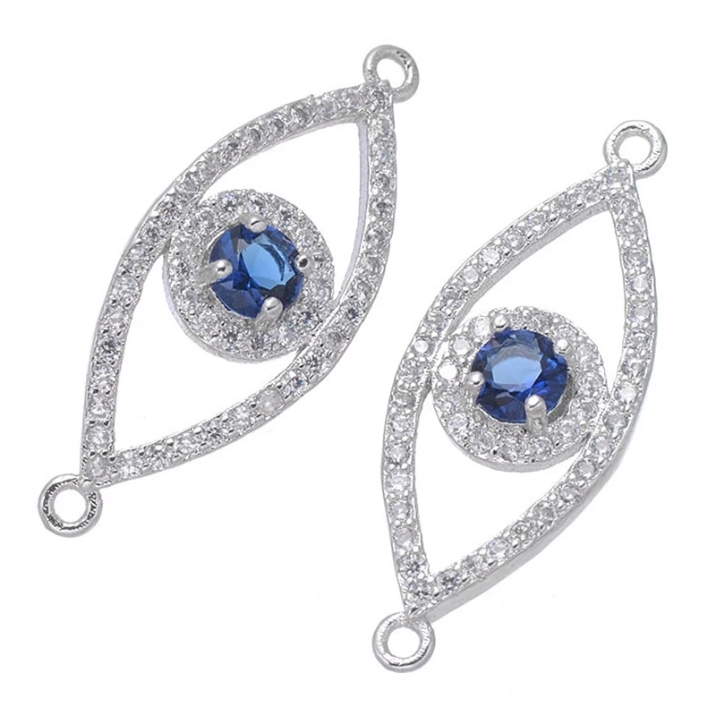 Juya 18K zlato pokovené cz paved měď dekorační 2se loops zlo oko okouzluje konektorů pro ruční turecký přívěsek šperků vytváření