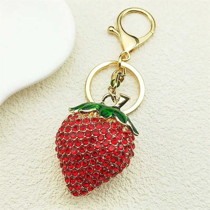 Roztomilá červená plný kamínky fréza slitina klíčenka pro ženy dívčí bling leštění broušené sklo kroužek na klíče brašna přívěsek šperků dar