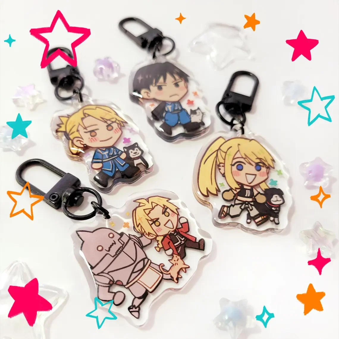 Plný kov alchymista FMA mini akryl půvab klíčenka s prokletí al winry roy hawkeye designs sběratelskou anime povaha keychains