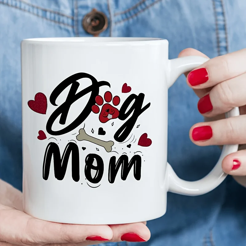 Pes maminka keramika káva hrneček - 11oz izolovaného bílá pohár s hravé packa otisků & srdce, dokonaný pro domácí, úřad, anebo mother’s