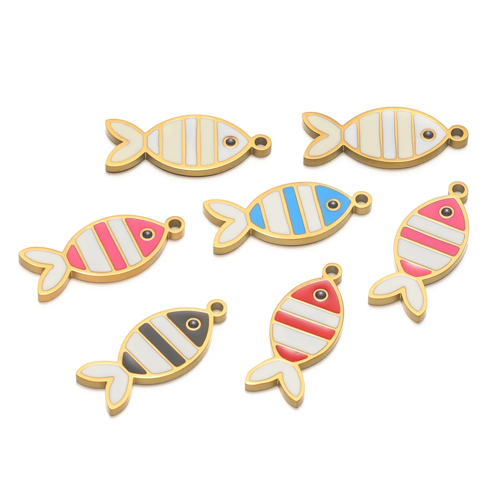 5ks nerez ocel smalt pestrý ryba okouzluje PVD zlato pokovené přívěsky pro DIY šperků vytváření náhrdelníky náušnice dekorace
