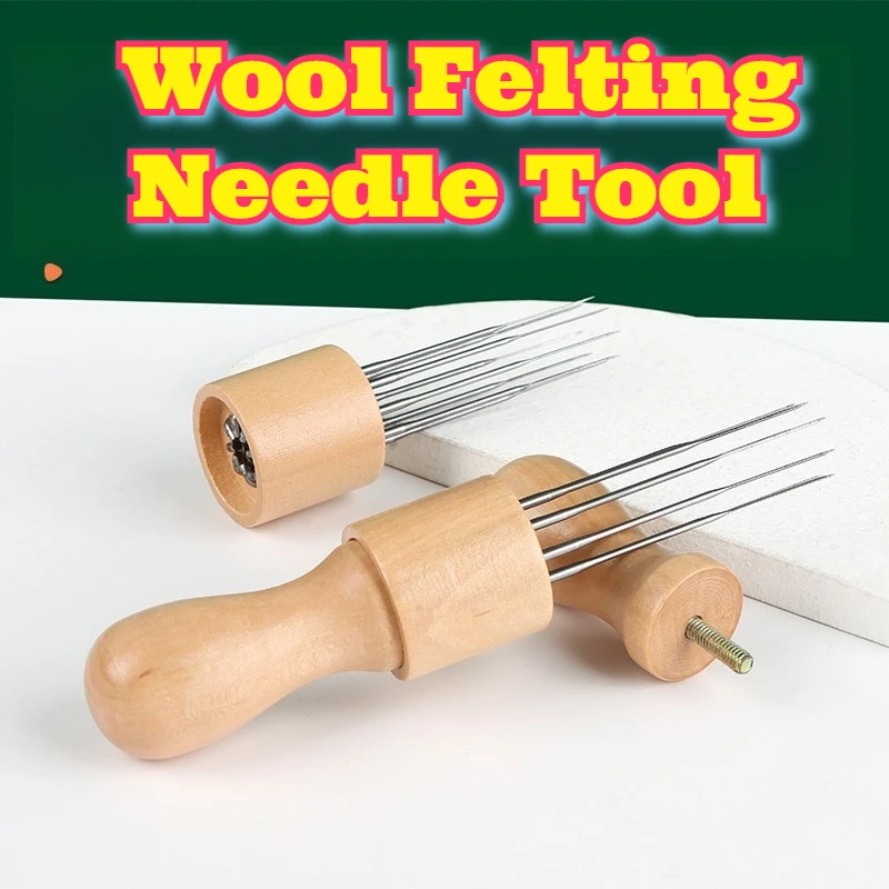 Vlna plstění jehla nářadí 8 nahraditelné jehlice dřevo madlo pero multi kování rychle plstění DIY řemeslo boxovací bodání umění zásoby