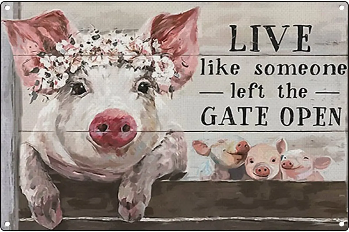 Graman bydlet abych tak řekl leckdo levá brána otevřený tisk plátna zeď umění plakát, farmhouse malba plátna, plátna prasat umění, kvést plakát,
