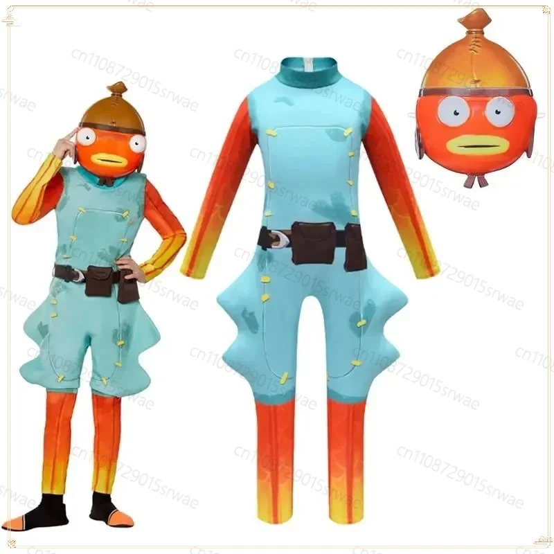 Halloween ryba tyčinka kostým pro teen hoch děvče kombinéza látka vánoce mask+playsuit hra 110-150cm děti oblečení roleplay