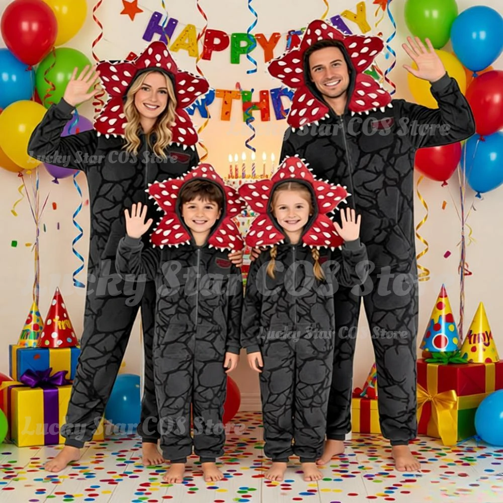 2026 kids&adult pyžamo s demogorgon rostlina design - flanel textilie dupačky pro chlapci & dívčí, měkké vánoce themed kombinéza