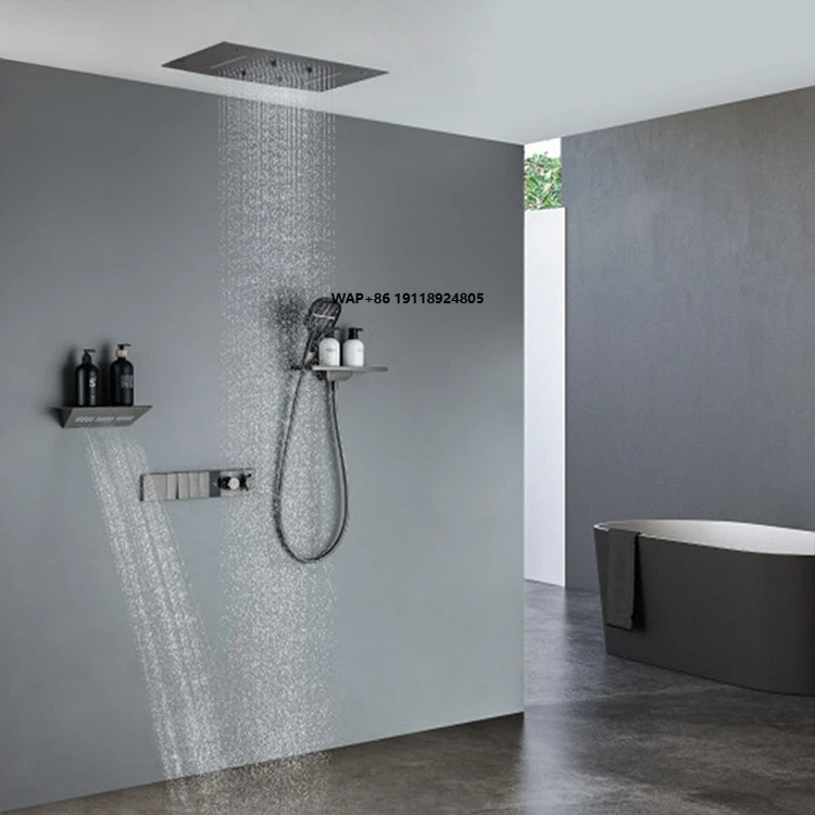 Moderní sprcha pípa 22 palec 3čepel functions černá sprcha termostatická déšť vodopád sprcha systém s ruka udržovaný