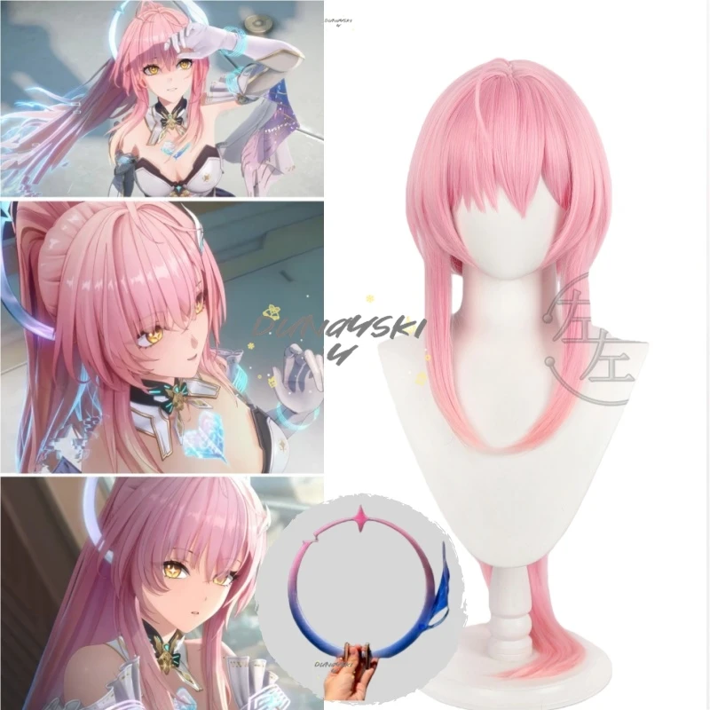 Wuthering vlnění aemeath cosplais rekvizita paruka dlouhé růžová culík žár odolné vlasy pro halloween karneval ženy dívčí