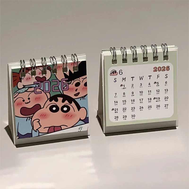 Mini 2026 kalendář pastelka shin chana ahoj kočička nový rok kalendář plocha ornamenty jaro slavnost dárky nový rok večírek dekorace