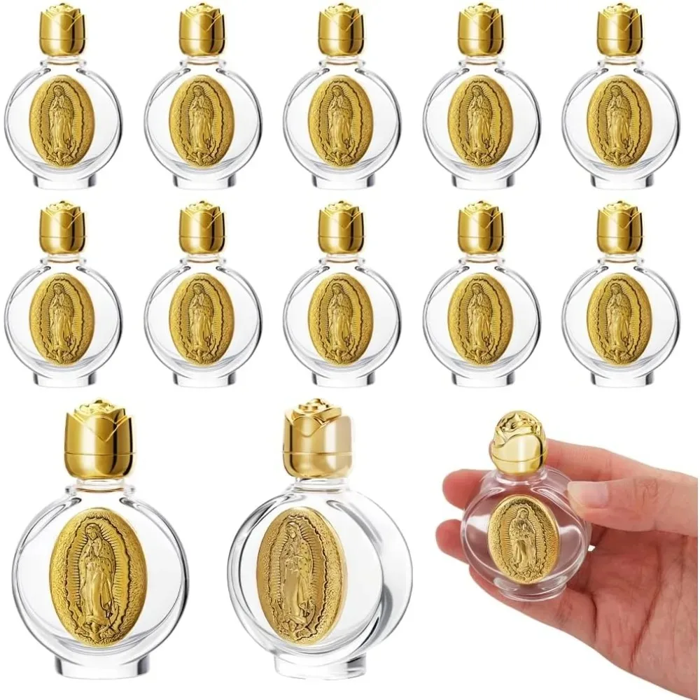 12/2pcs svatá voda lahve 0.5 floz ražené přenosné prázdný sklo cestovní lahve s kryt málo láhev církev dekorace
