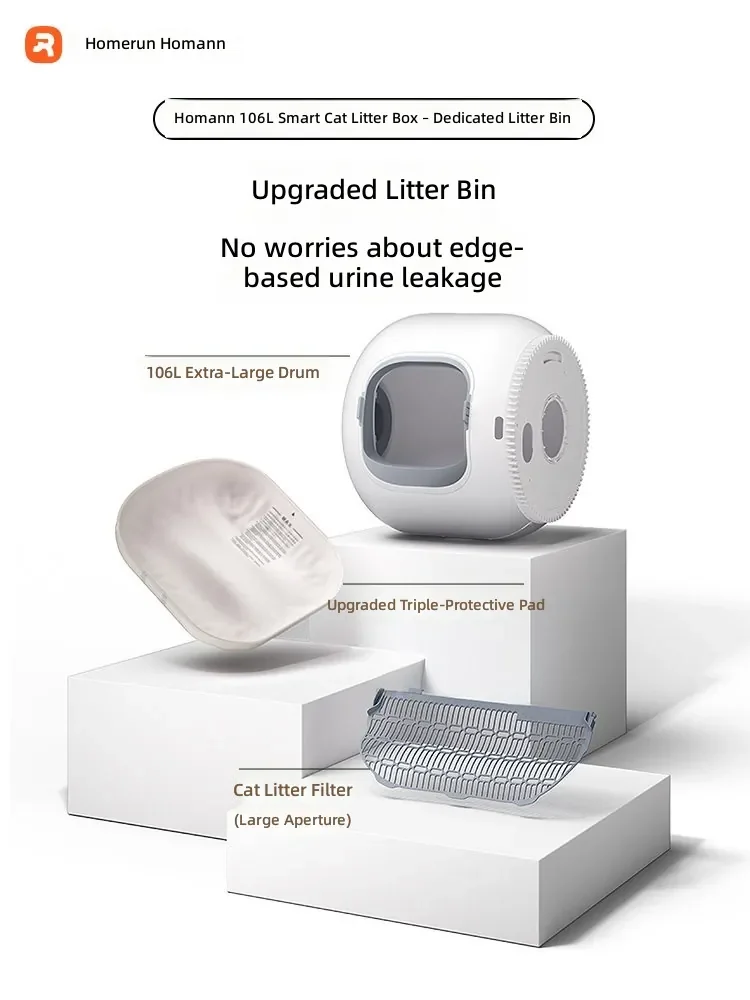 Pro homie 106L chytrý kocour nosítka skříňka odpad kontejner modernizované písek úložný bin kompatibilní s 106L automatický sebe úklid