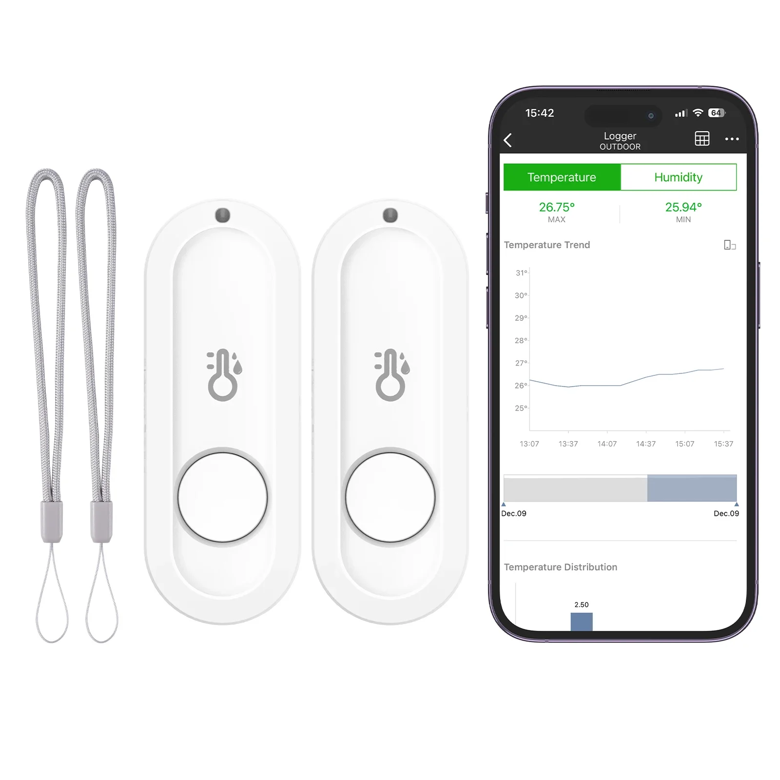 2-pack bezdrátový chytrý temp-humidity měřič datový úložný vyvážet app výstrahy halové outdoorové použít pro domácí zvířátko úřad skleník