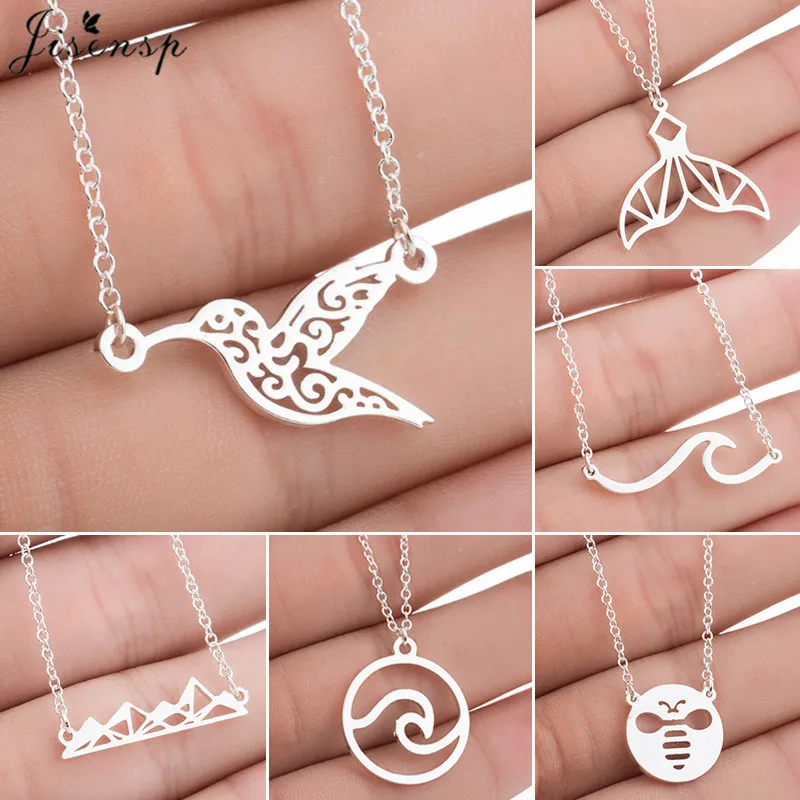 Kolibřík nerez ocel náhrdelníky pro ženy móda ryba zadek včela vlna hora přívěsky náhrdelníky každodenním šperků 2025