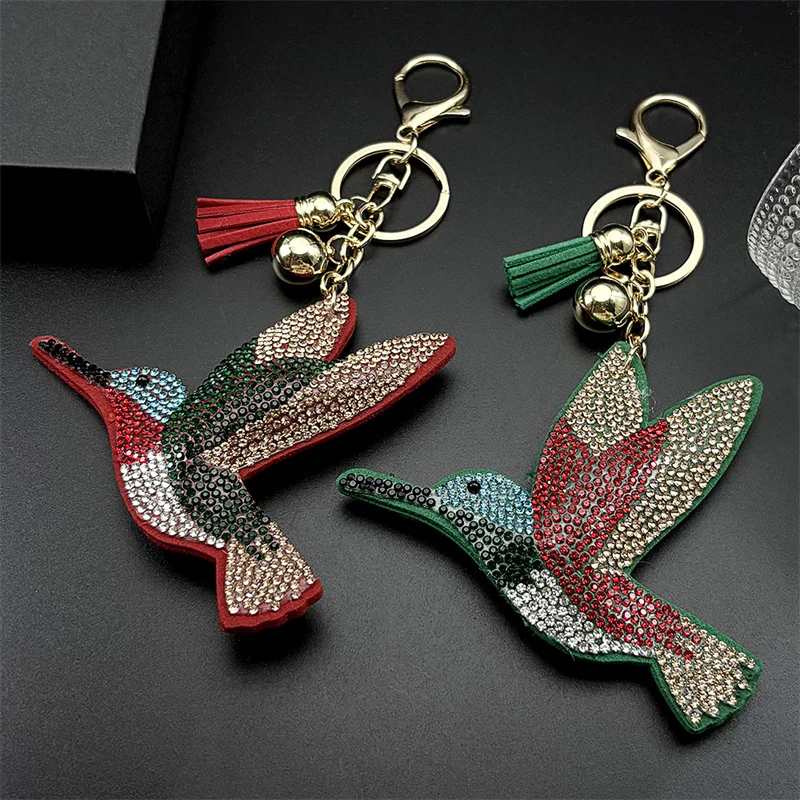 Létající kolibřík klíčenka pro ženy muži plný pestrý drahokamu červená střapcem láska ptactva žena brašna okouzluje kroužek na klíče šperků dárky