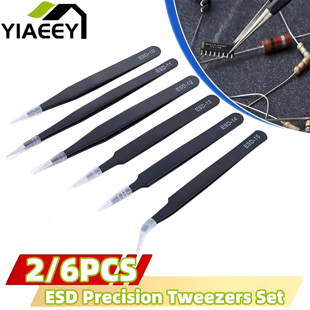 6ks precizní pinzeta sada esd anti-static nerez ocel pinzeta oprava nástroje pro elektronika oprava pájení řemeslo