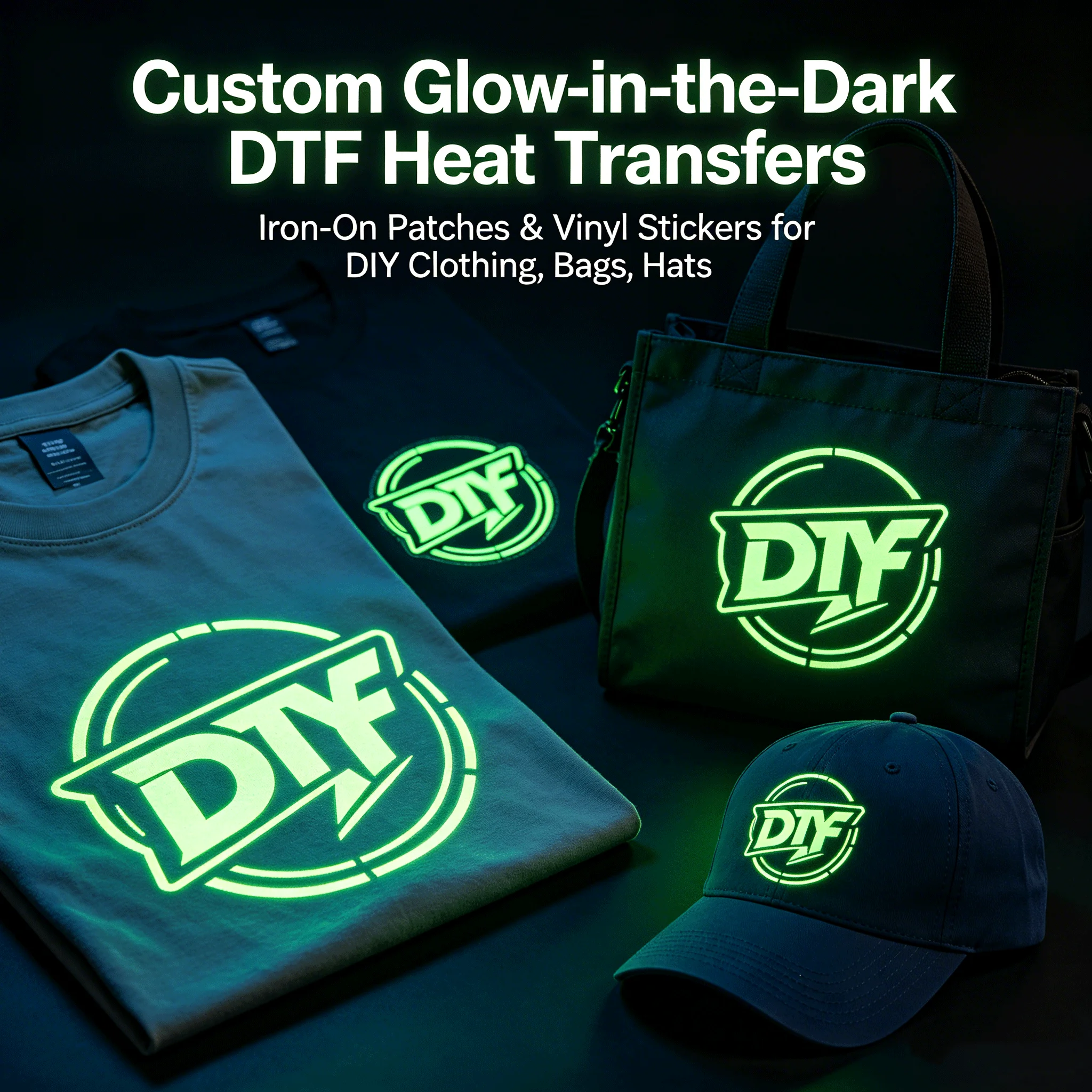 Nestandartní DTF horko převody záře v temný žehlička na převody náplasti pro oblečení DIY logem design vinyle nálepky pro tričko čepice