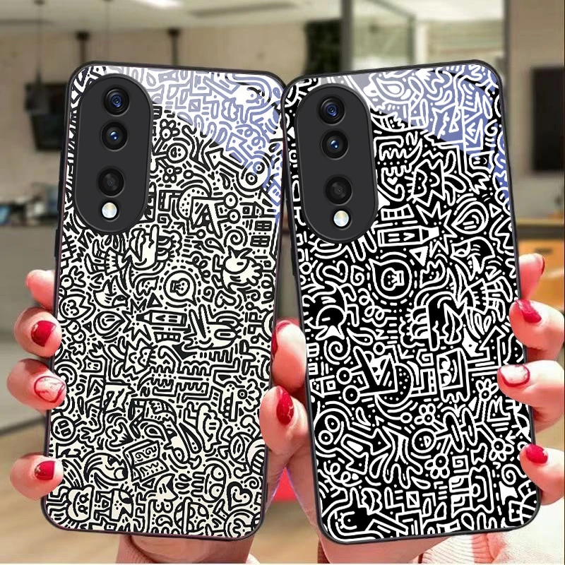 Fialový graffiti kreslený telefon pouzdro pro uctívat x9c magic7 magic6 400 200 lite 200pro 200 chytrý x9a x8a x8b x8c x7c fundas zakrýt