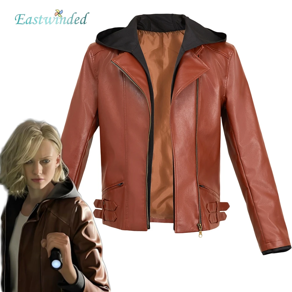 Biohazard hra requiem blahosklonnost ashcroft cosplais hnědá kůže bunda s kapucí kabát kostým ženy halloween oblečení karneval večírek