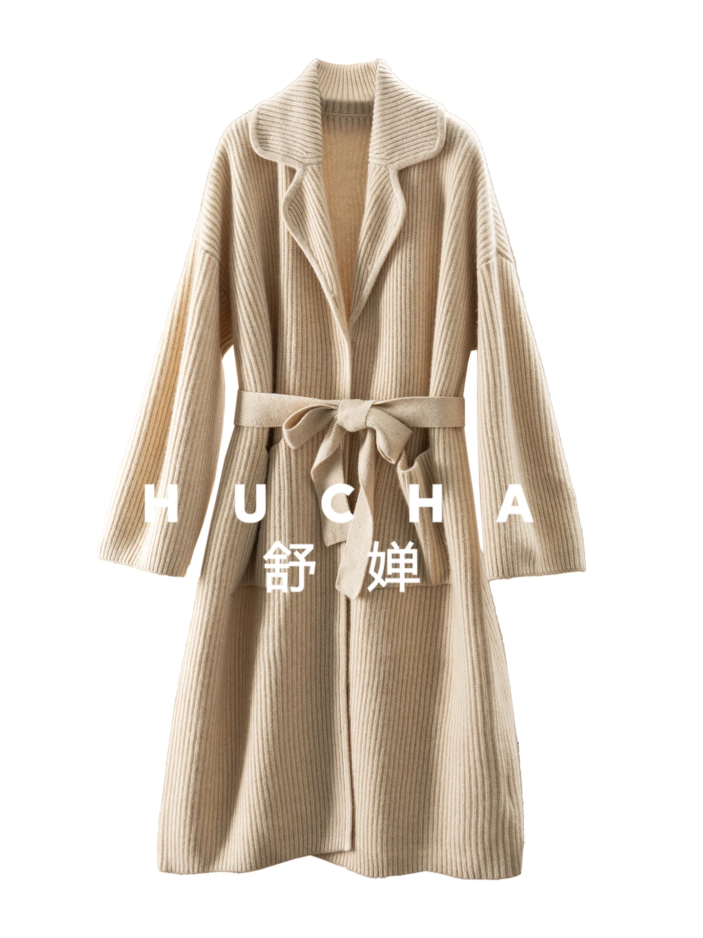 100 kašmírové kabát, francouzský hustý dlouhé svetr bunda dámská 26I9 šněrovací sueter mujer invierno 2025 winrer 1KG