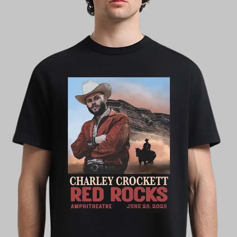 Charley crockett červená rocks amphitheatre událost plakát červen 25 2025 klasický T košile