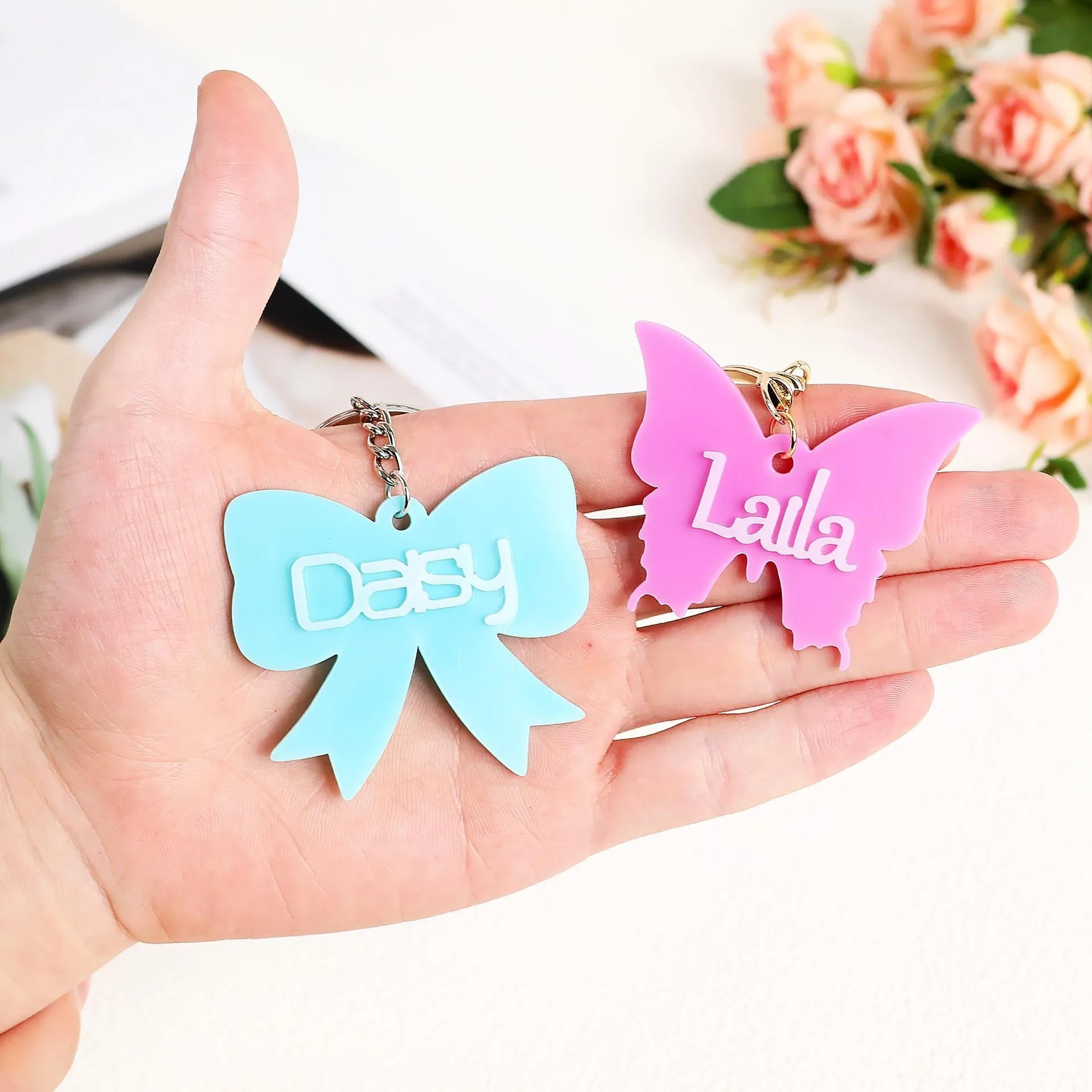 Nestandartní jméno akryl klíčenka s roztomilá luk personalizované jmenovka visačka klíč prsten brašna půvab batoh příslušenství dar pro žena dívčí