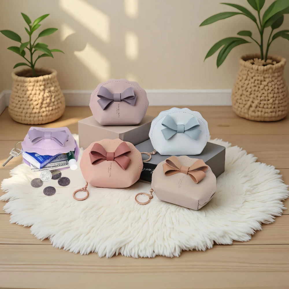 Roztomilá kreslený huba červená kolem klíčenka univerzitní styl luk mini náprsní taška sluchátka úložný brašna klíč prsten přenosné brašna závěsný dar