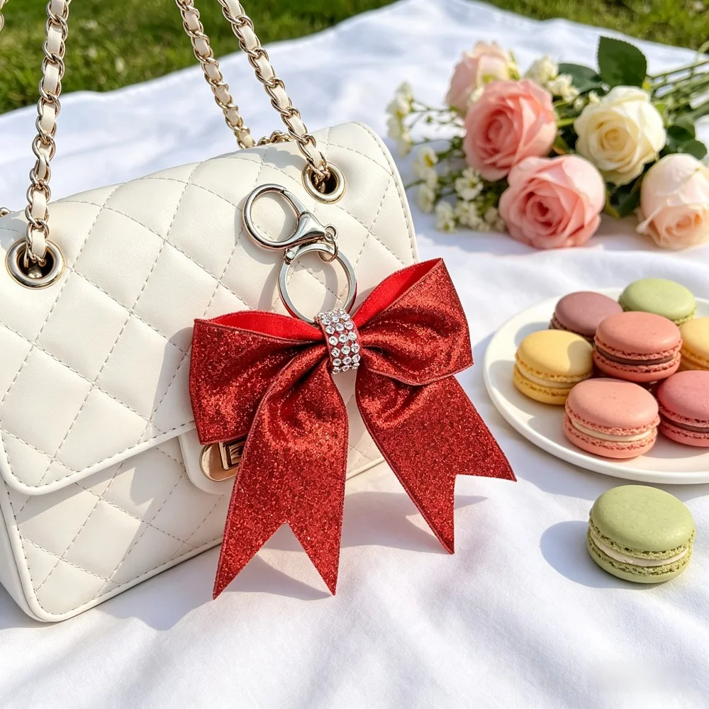 Multi barevný satén luk drahokamu klíčenka muž ženy dar příslušenství moderní klíč roztomilá handbae lesklý kroužek na klíče příslušenství