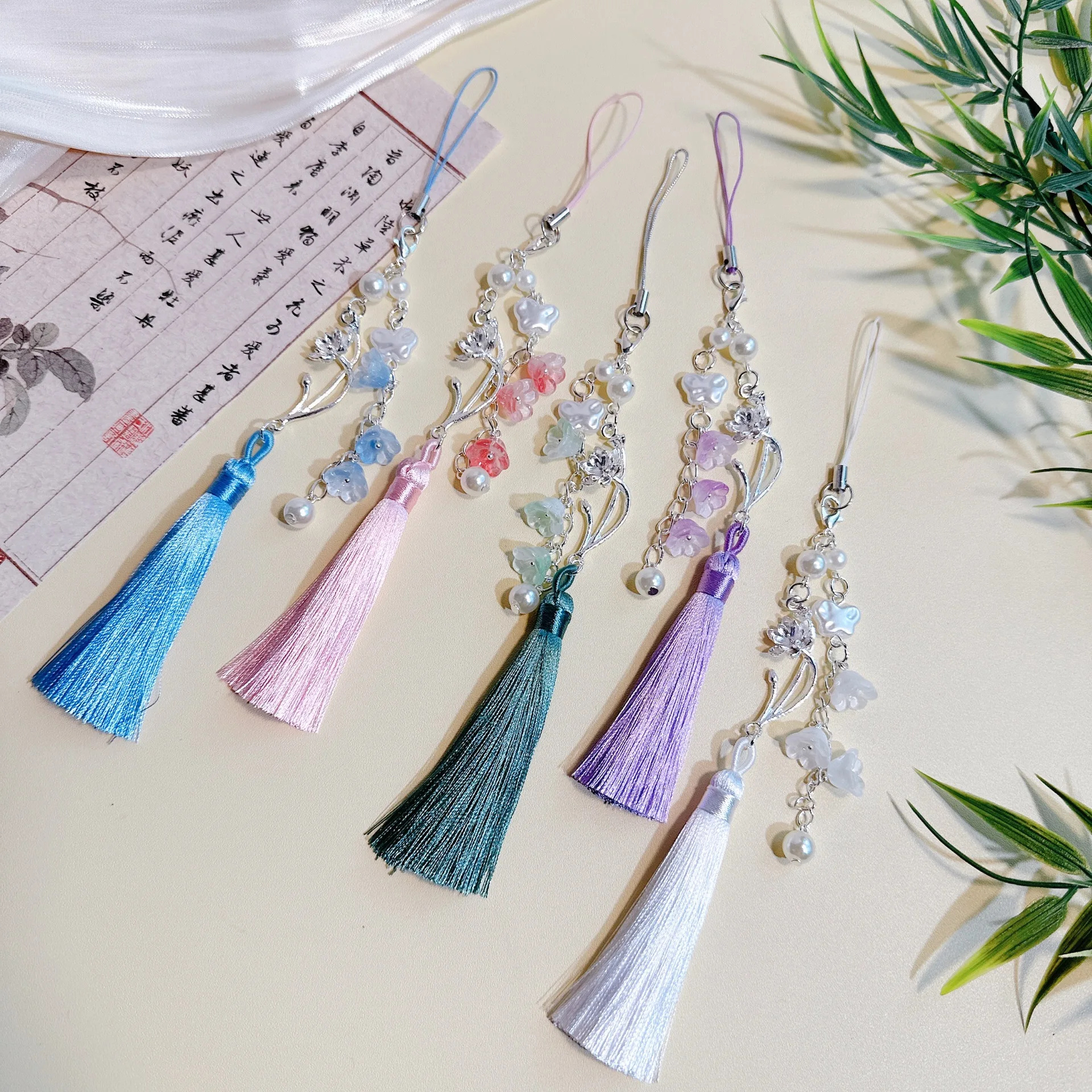 Y2K lilie kvést mobilní telefon šňůrka na krk estetická střapcem telefon půvab keycord stylové holčičí klíč držák přívěsek mobilní telefon popruhy