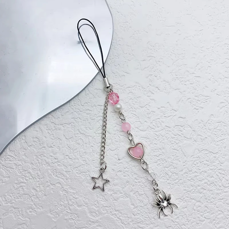 Y2K gotický korálkový mobilní telefon šňůrka na krk kreativní pavouci přívěsek telefon běžící pás estetická buňka telefon řemen keycord