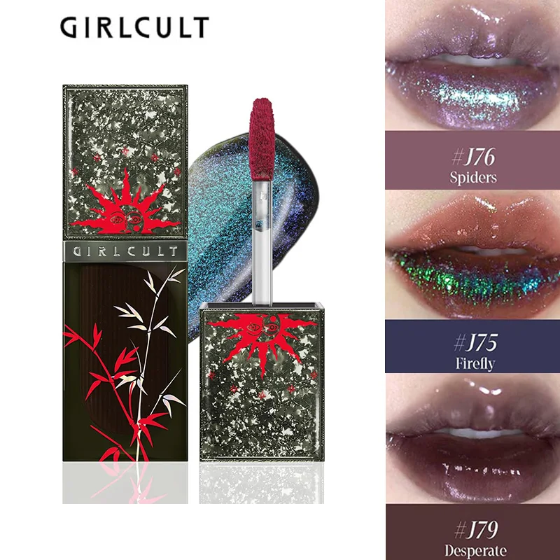Girlcult goth zrcadlo lipgloss leskle zelená chameleoni hydrating lippe glazura high-shine nepřilnavý pohár namyšlený halloween lippe líčení