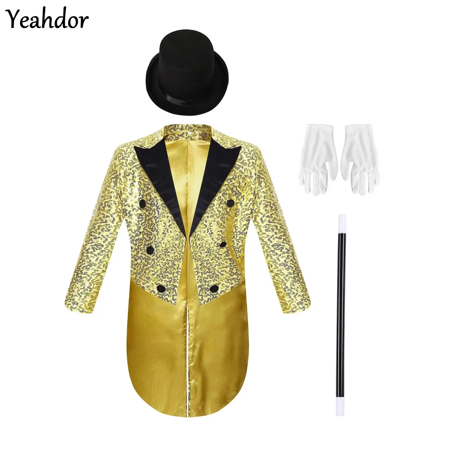 Chlapci dlouhé rukáv flitr sako smoking kabát halloween magická cirkus ukazuje představení costum svatební večírek tailcoat pán oblek