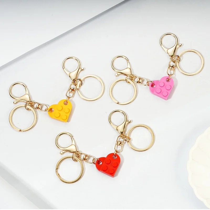 Nový pestrý cihla srdce klíčenka pro manželé kamarad kamaradka nejlepší kamarad, roztomilá cihla párování grafu keychains sada pro manžel manželka