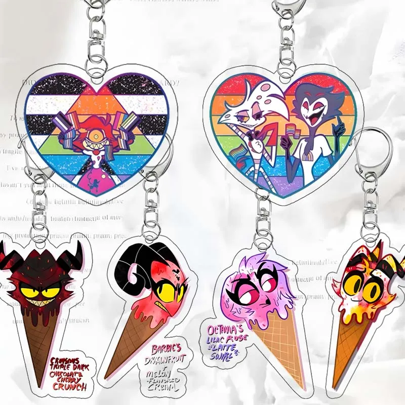 Helluva šéf akryl klíčenka kreslený niffty manželé oblek láska dekorace anděl prach příslušenství stolas kroužek na klíče brašna přívěsek