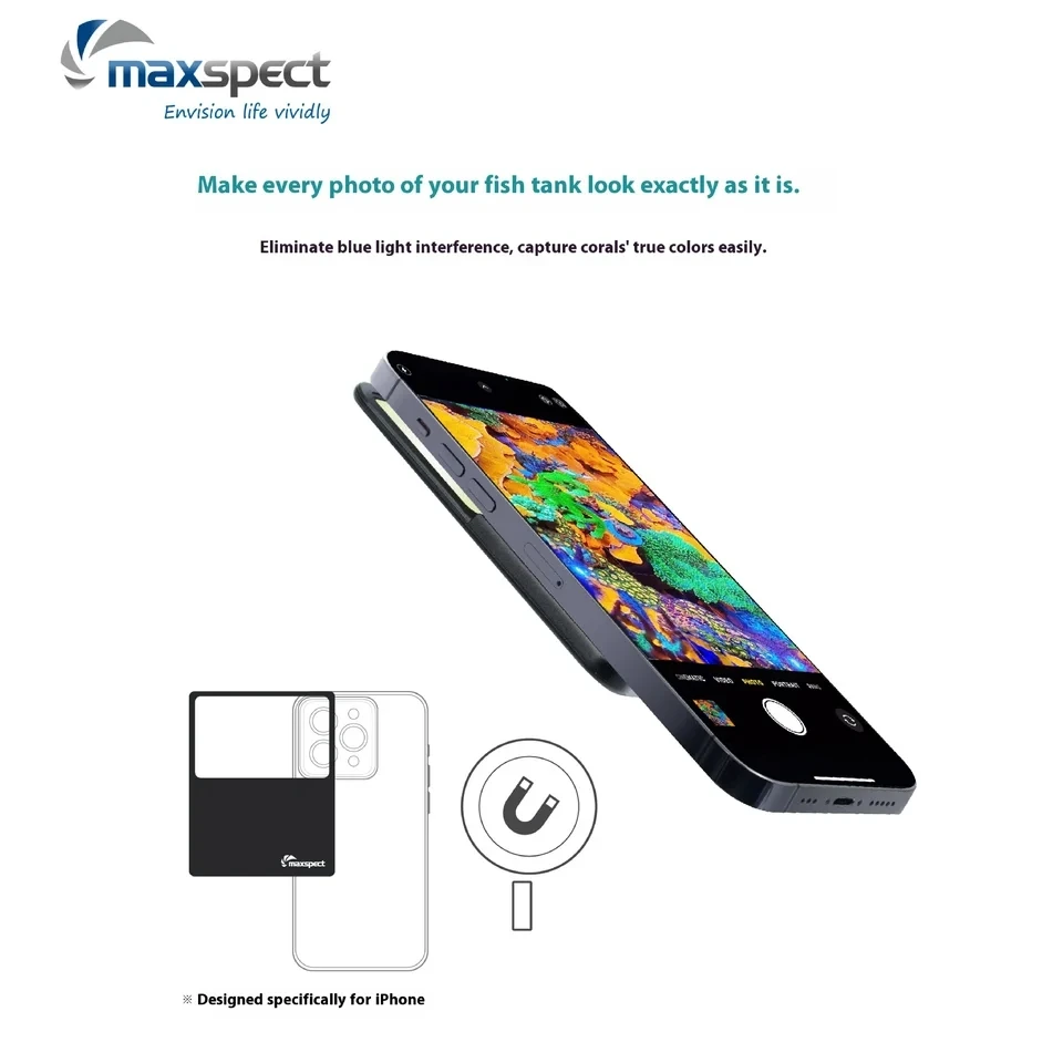Maxspect aqaurium mobilní telefon fotka korál filtr truereef mořský ryba komora iPhone magnetický povlak modrá lehký filtr objektiv