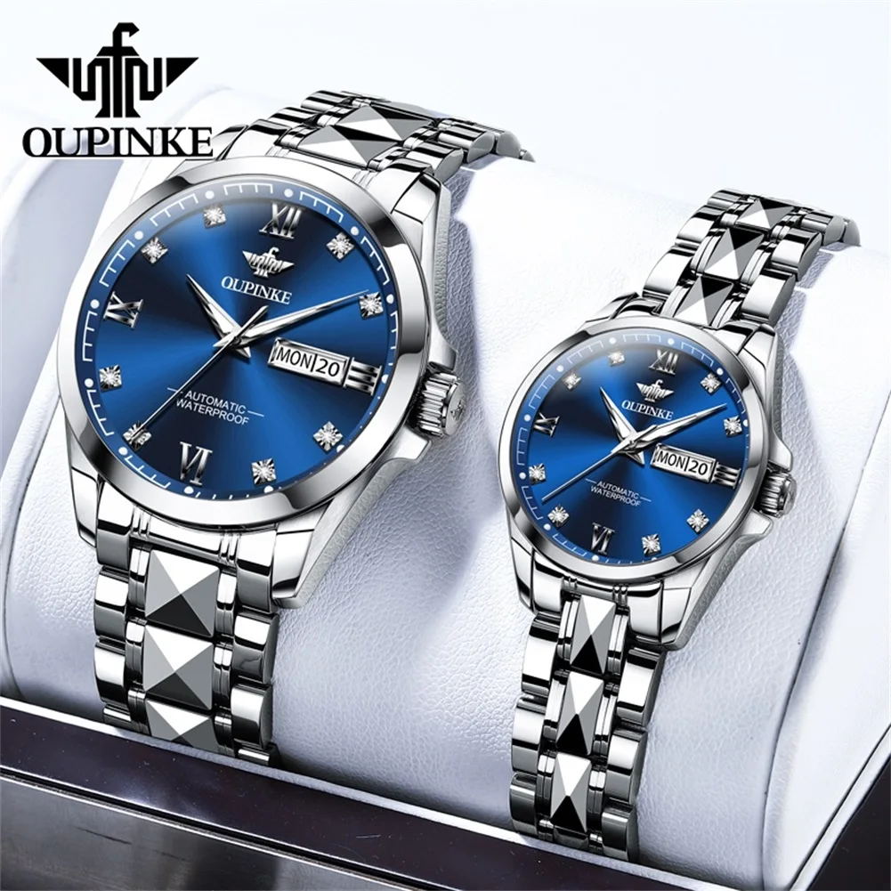 OUPINKE 3262 manželé hodinky móda podnikání dvojí kalendář 50M vodotěsný náramkové hodinky luxusní automatický mechanická hodinky muži ženy