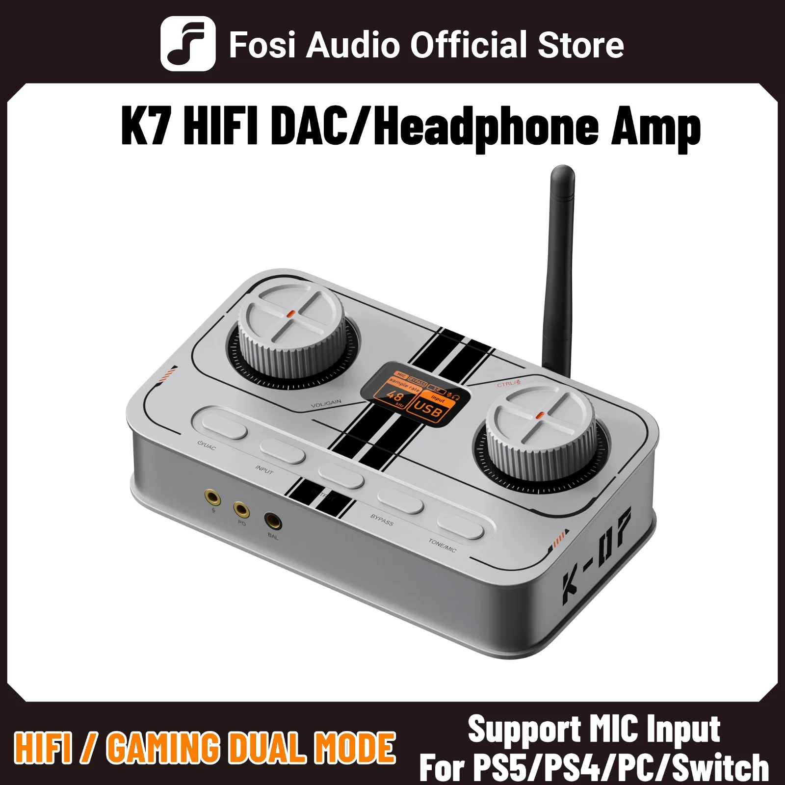 Fosi audio bílá K7 herní sluchátka DAC amp Bluetooth hifi plocha DAC zesilovač pro PS5 PC spínač mikrofon vstupní 3.5mm/4.4mm výroba