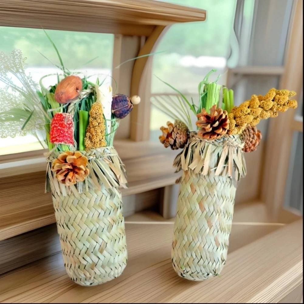 Ptáci žvýkat hračka přírodní handwoven papoušci foraging hračka s borovice kužel proso sušené rostlin pro parakeets cockatiels pro malý ptactva