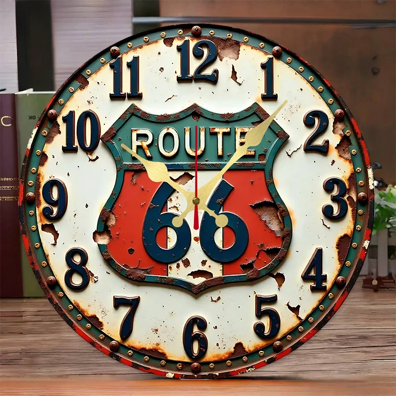 Trasa 66 vintage dřevěný kolo tichá závěsný zeď hodiny řemeslo kroužek dřevo talíř křemen hodiny autodílna livingroom ložnice dekorace
