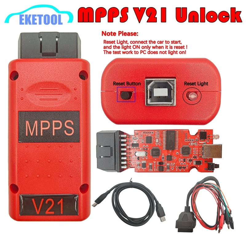 Odemknout červená mpps V21 resetovat knoflík unlimited tokens červená PCB (desky plošných spojů) deska plný čipem s breakout tricore kabel ecu čipem tuningu nářadí