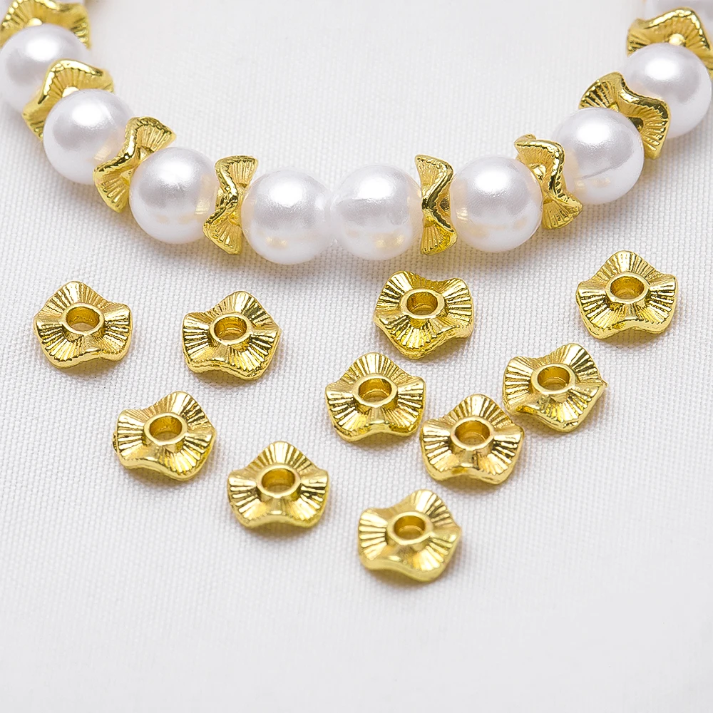 20/30/50pcs zlato pokovené 6pro 8 10mm barokní vlna korále plochý kolo kov spacer korále řetízek náušnice náramek šperků příslušenství