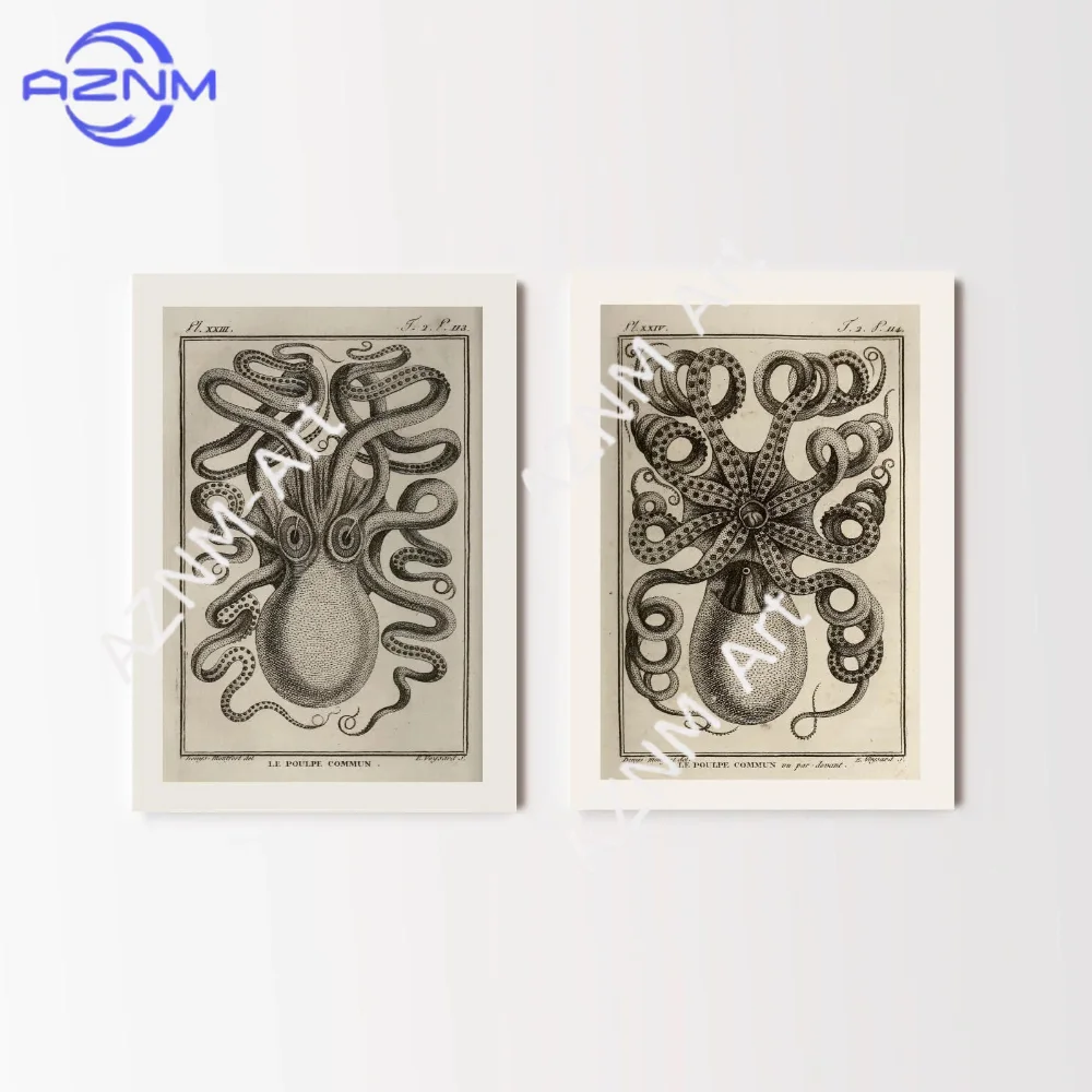 1/2pcs le poulpe colossal otisků | antický chobotnice malba, vintage obr krakatice, kraken domácí dekorace, moře nestvůra zeď umění plakát
