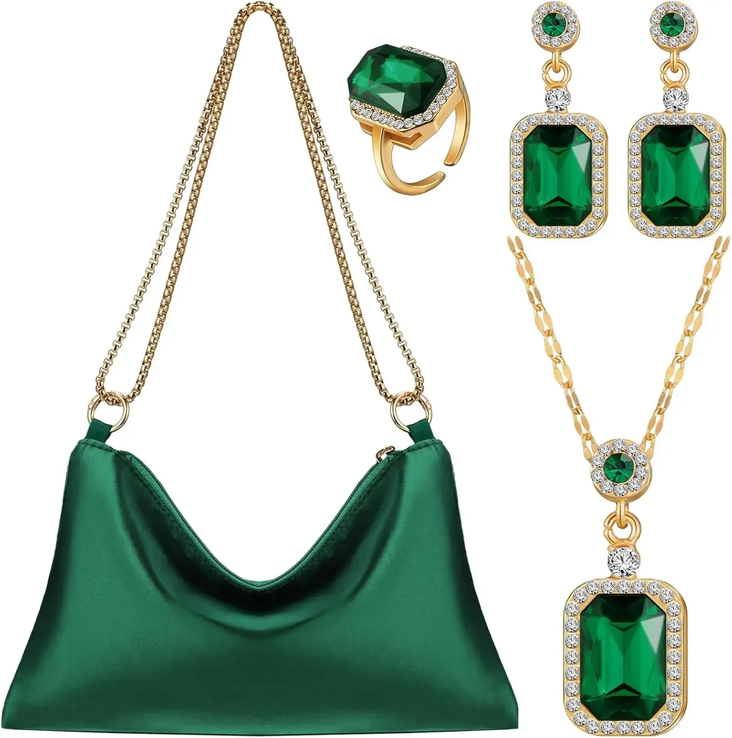 4 ks soumrak kabelka bedra měšec drahokamu měšec rýt brašna kubický přívěsek řetízek náušnice prsten pro women(emerald)
