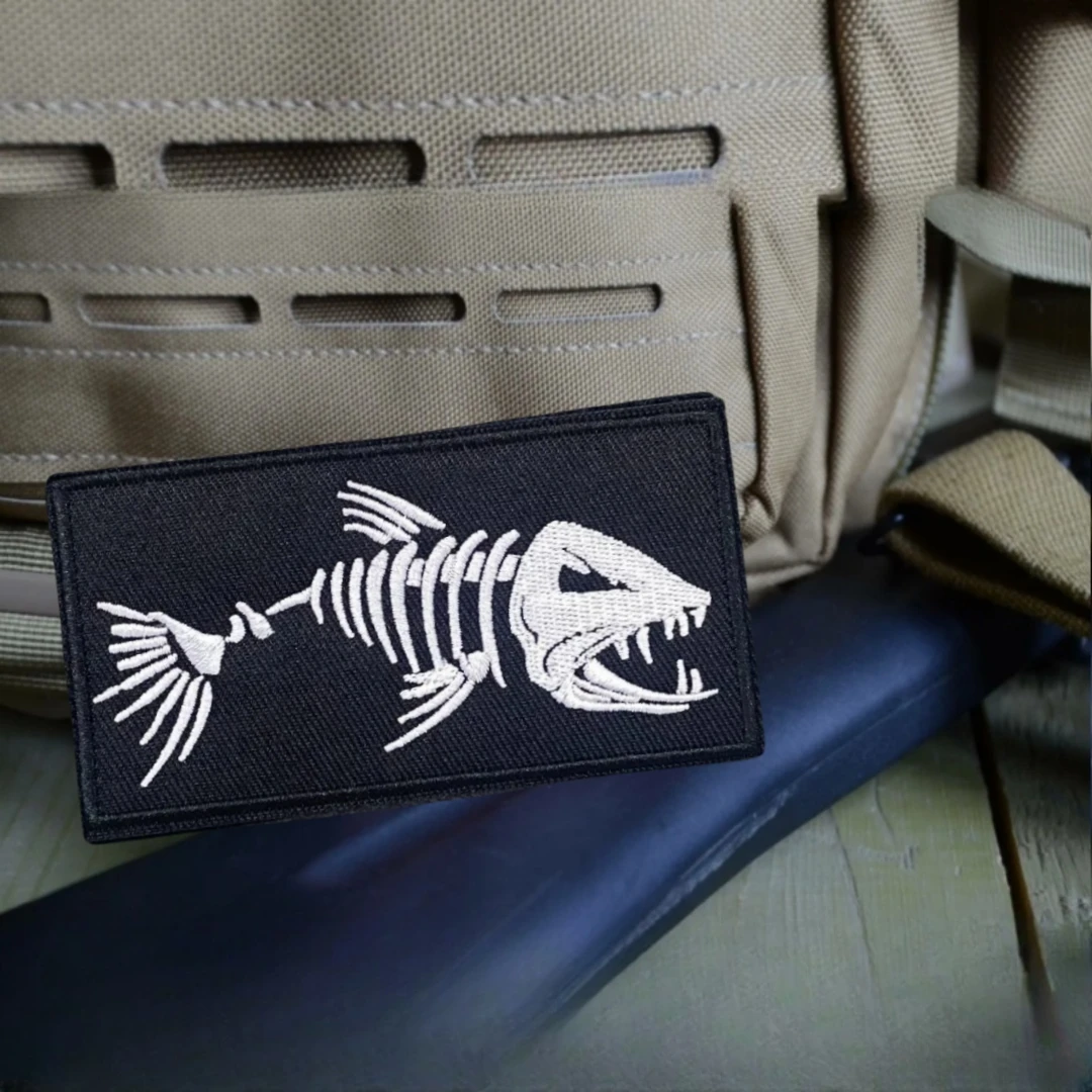 "fish skeleton" chevron morálka taktická náplast vojenská páska na rukávě vyšívané hák a smyčka odznak batoh příslušenství nálepky